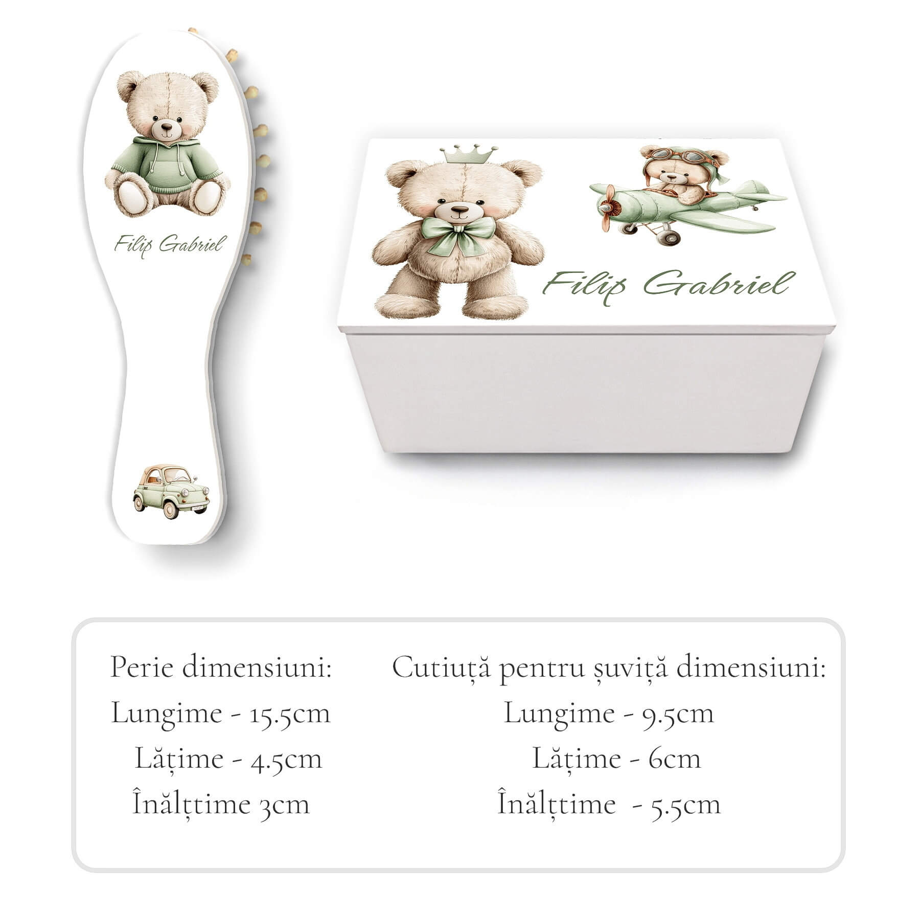 SET COMPLET Include: Taviță, Cutiuță Moț, Oglindă, Perie, Ramă Foto. CADOU Forfecuță și Panglicuță și REDUCERE 20 lei!